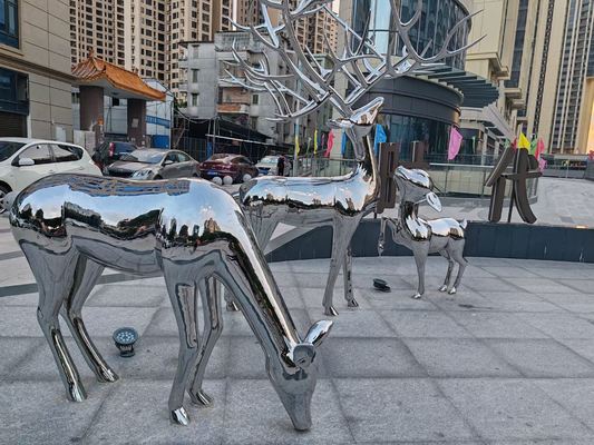 Elegante set di sculture a specchio in acciaio inossidabile a forma di cervo