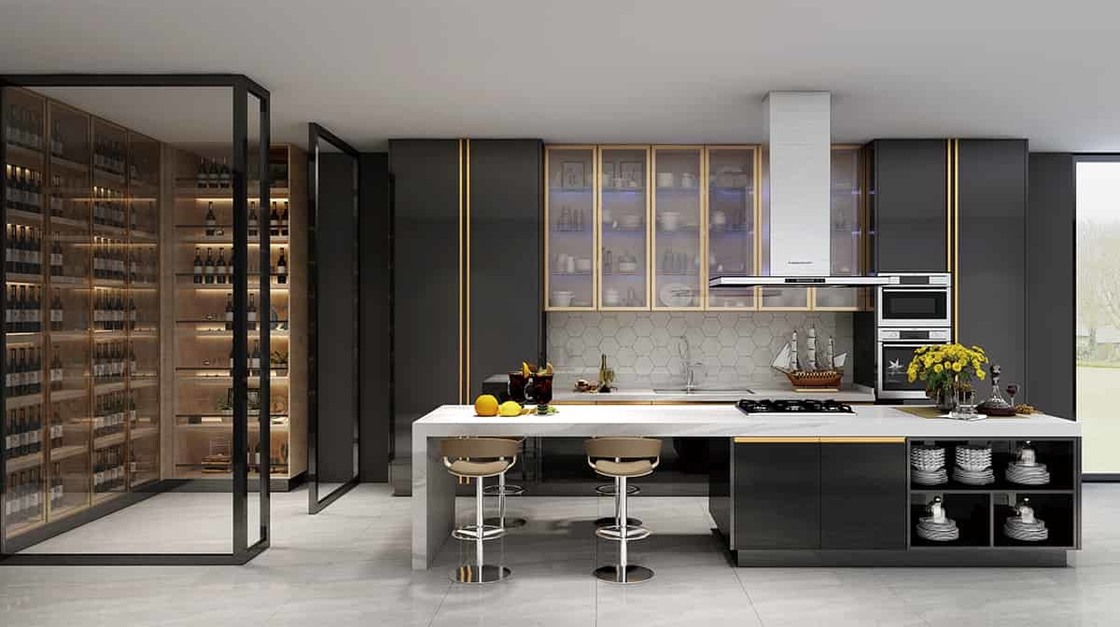 Designed for both utility and aesthetics, this set includes a spacious wine cabinet with dedicated racks to securely store your favorite bottles. Temperature-control features help preserve wines at their ideal conditions, while transparent glass doors showcase your collection elegantly. The kitchen cabinet complements this with smooth-gliding drawers and sturdy shelving, making meal prep and entertaining seamless. Every detail, from the soft-close hinges to the fingerprint-resistant surface, reflects thoughtful craftsmanship.