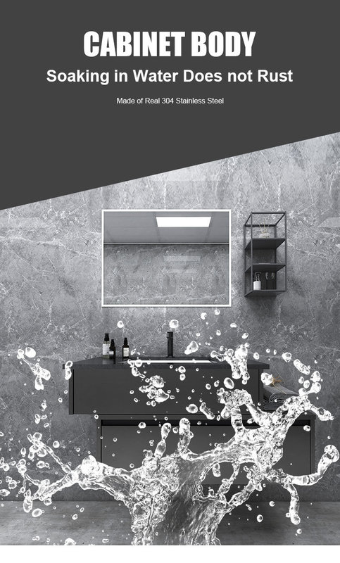 Elevate your bathroom with a vanity designed for lasting durability and modern elegance. Crafted from premium 304 stainless steel, this vanity is rust-resistant, non-corrosive, and built to withstand humid environments. Its sleek, minimalist design complements any decor, from contemporary to industrial, while providing a clutter-free, organized space for your daily essentials.